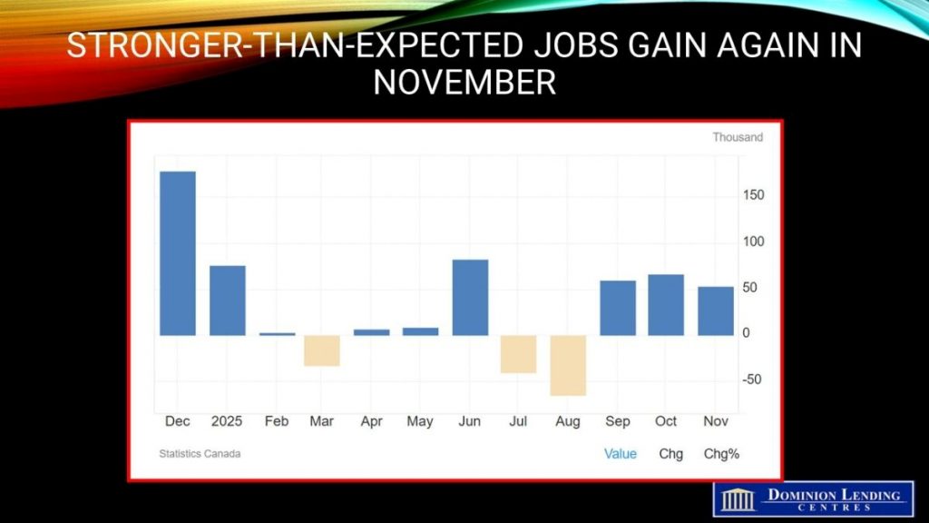 The Canadian economy added 53,600 jobs in November, marking the third straight month of unexpectedly strong gains amid US tariffs that otherwise slowed activity.