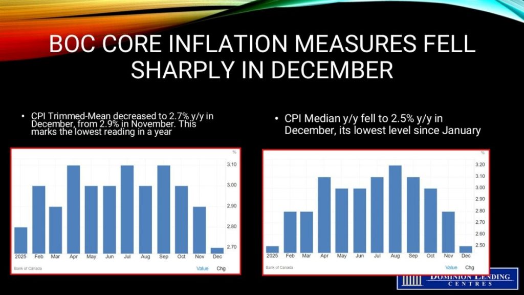The main core inflation measures decelerated sharply in December, with the BoC’s two measures both easing to their lowest level in a year.