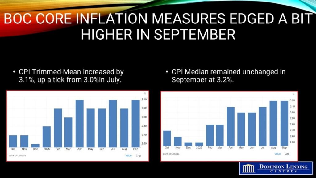 In September, both CPI-median and CPI-trim came in hotter than economists were expecting. The average of these metrics was 3.15% in September, while the three-month moving average accelerated to 2.7%.