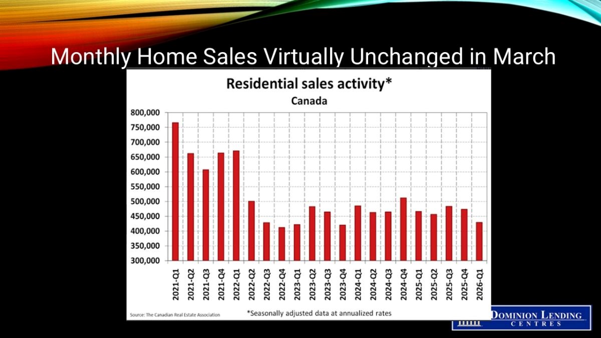 The number of home sales recorded over Canadian MLS® Systems was virtually unchanged (-0.1%) on a month-over-month basis in March 2026.