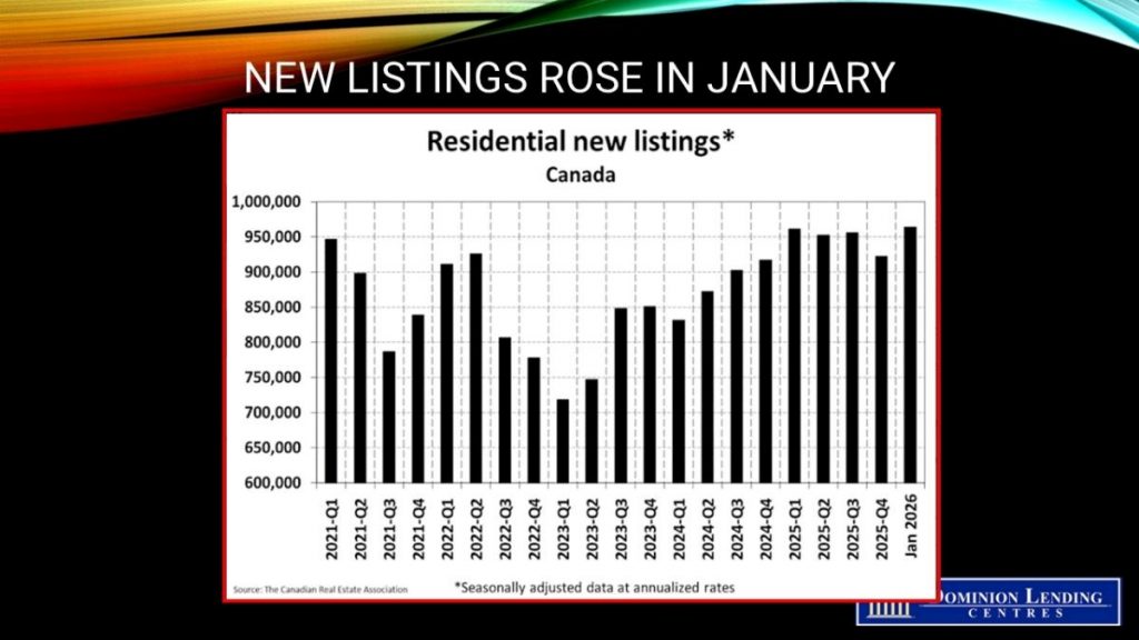 There were 140,680 properties listed for sale on all Canadian MLS® Systems at the end of January 2026, up 4.5% from a year earlier but 11.4% below the long-term average for that time of year.