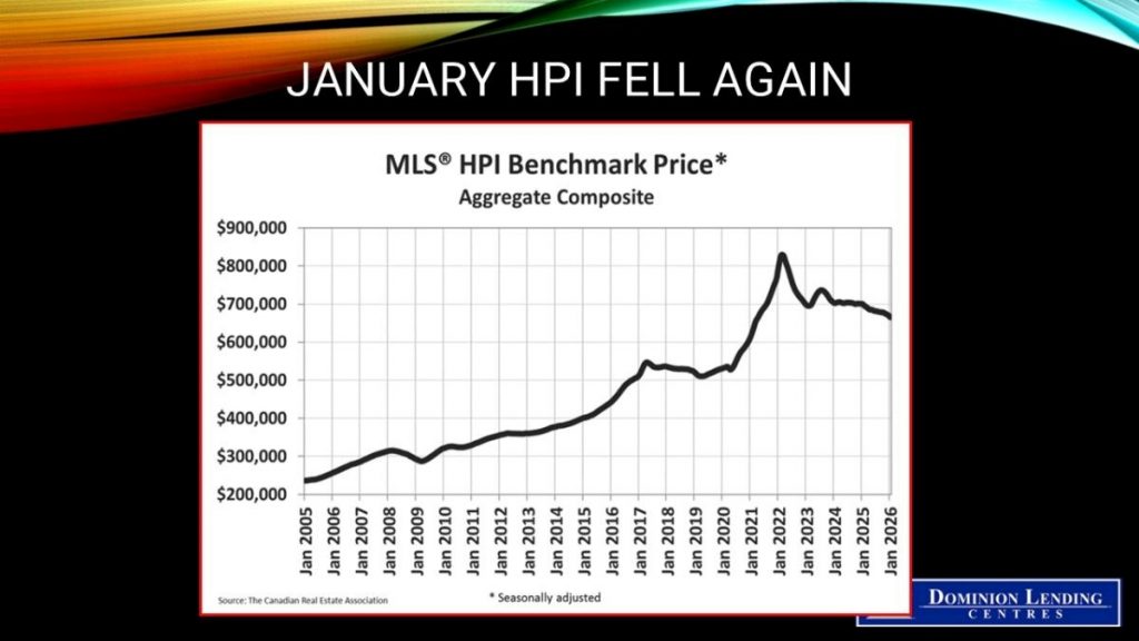 In line with more supply and less demand in January 2026, the National Composite MLS® Home Price Index (HPI) fell by 0.9% on a month-over-month basis.