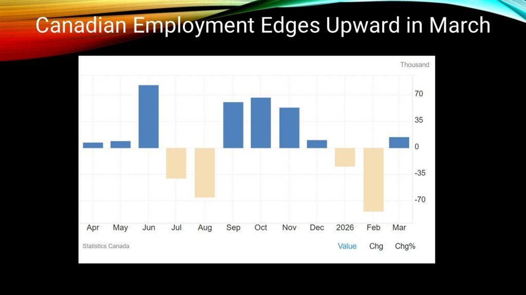 The Canadian Labour Force Survey for March showed a small uptick in employment on the heels of a two-month decline earlier this year.
