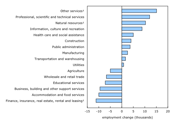 Employment in natural resources also increased (+10,000; +3.0%), with nearly half of those gains coming from Alberta (+4,500; +3.2%). On a year-over-year basis, employment in this industry was little changed at the national and Alberta levels.