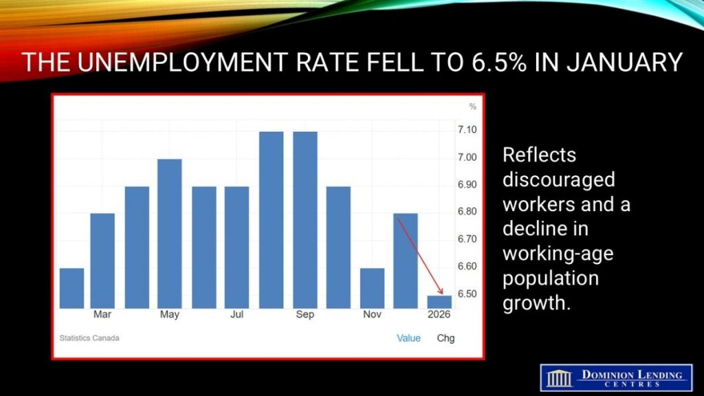 Canadian Jobs Growth Slowed Markedly in January as the Unemployment Rate Fell Sharply to 6.5%.